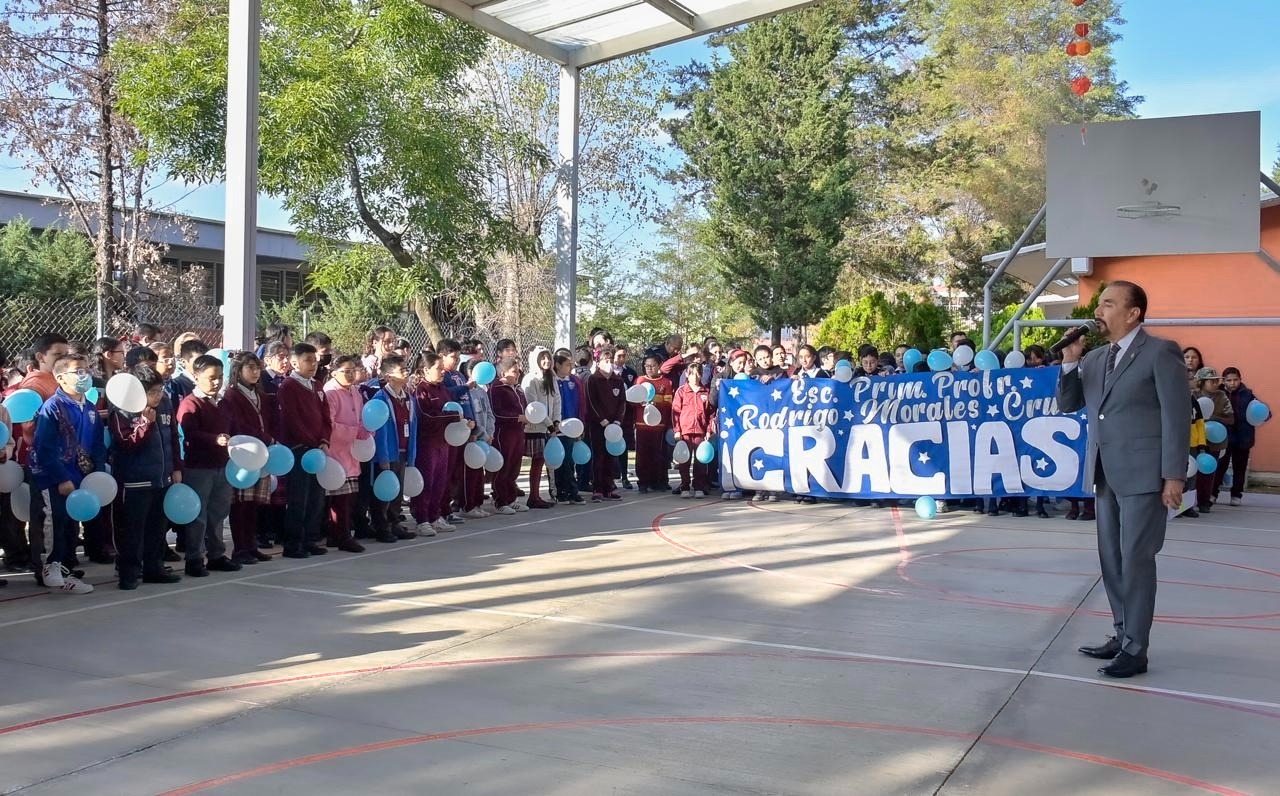 Por su parte, el Director de la Escuela Primaria Rodrigo Morales Cruz, Fernando Martiniano Dircio, agradeció el apoyo de 10 botes de pintura para embellecer el espacio educativo y destacó que la escuela también cuenta con el apoyo de Seguridad Pública y Tránsito Municipal.