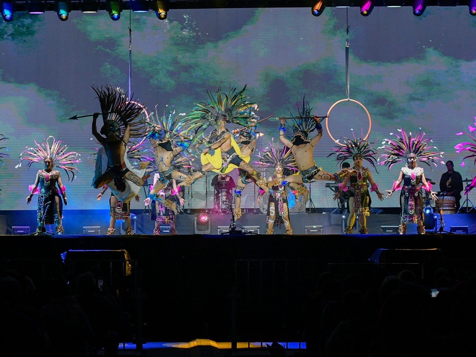 El escenario principal de la Explanada Municipal cautivó al público con la puesta en escena “Entre el cielo y el Mictlán”, una majestuosa producción de arte y folclor dirigida por Aranza Zu López. En esta obra, más de treinta artistas dieron vida a una travesía simbólica entre el mundo terrenal y el inframundo prehispánico, combinando danza, canto, acrobacias y un impresionante juego de imágenes. Cada movimiento evocó las raíces indígenas que conforman la identidad de México, creando una experiencia visual y emocional que celebró la conexión entre la vida, la muerte y la espiritualidad ancestral.
