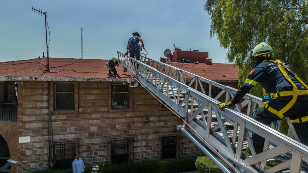Además del desalojo de espacios públicos, en un segundo escenario hipotético atendieron a un lesionado que estaba ubicado en el techo del palacio municipal; con el apoyo de una escalera  telescópica y cuerdas lograron descender al lesionado y ponerlo a salvo.