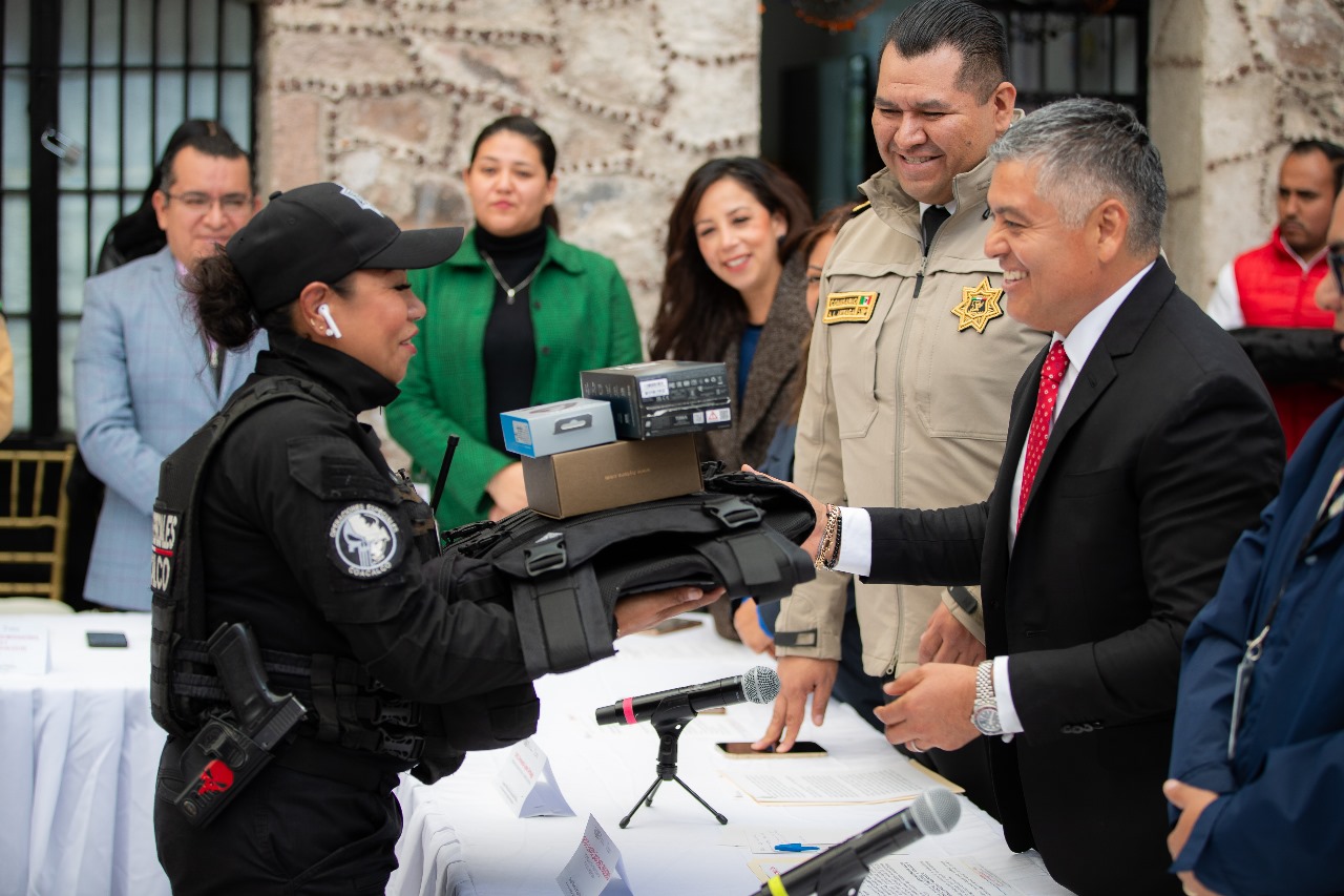Cabe destacar, que el total de equipamiento policial consiste en 41 chalecos balísticos, 23 cámaras de solapa y 25 cámaras para casco táctico; la adquisición de este equipamiento fue con recursos provenientes del Programa de Acciones para el Desarrollo 2023 y Fortalecimiento de las Instituciones de Seguridad Pública 2023.