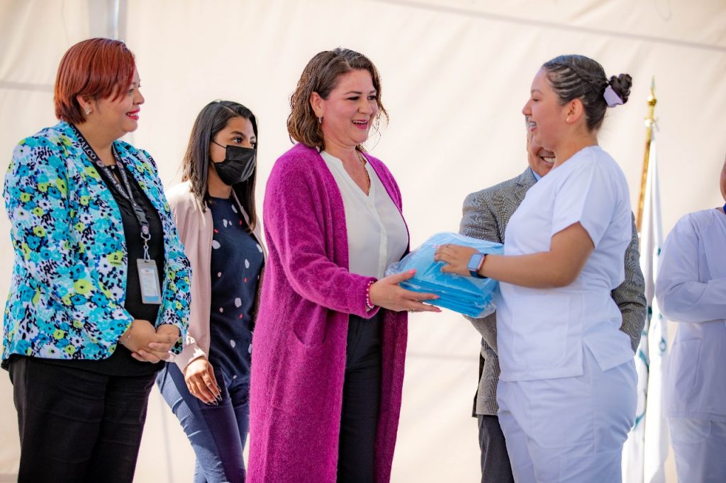 Por su parte, Mayra Ponce Martínez, rectora del ETAC, agradeció el apoyo a los estudiantes del área de la salud y reconoció la labor de la presidenta honoraria del DIF Municipal y del alcalde de Coacalco, por impulsar el desarrollo correcto de los futuros profesionistas que cuidarán de la salud física y mental de las personas.