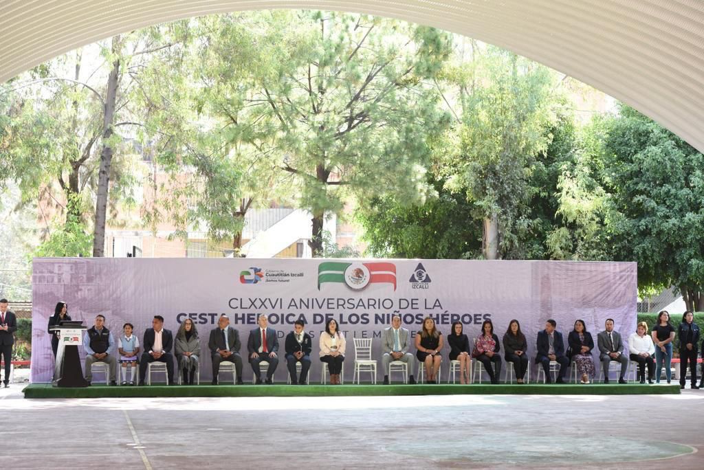 Con motivo del CLXXVI Aniversario de la Gesta Heroica de los Niños Héroes, la presidenta municipal, Karla Fiesco en compañía de integrantes del Cabildo y directores de área asistió a la Ceremonia Cívica en la escuela primaria “Patria y Libertad” en la Unidad Habitacional Niños Héroes.