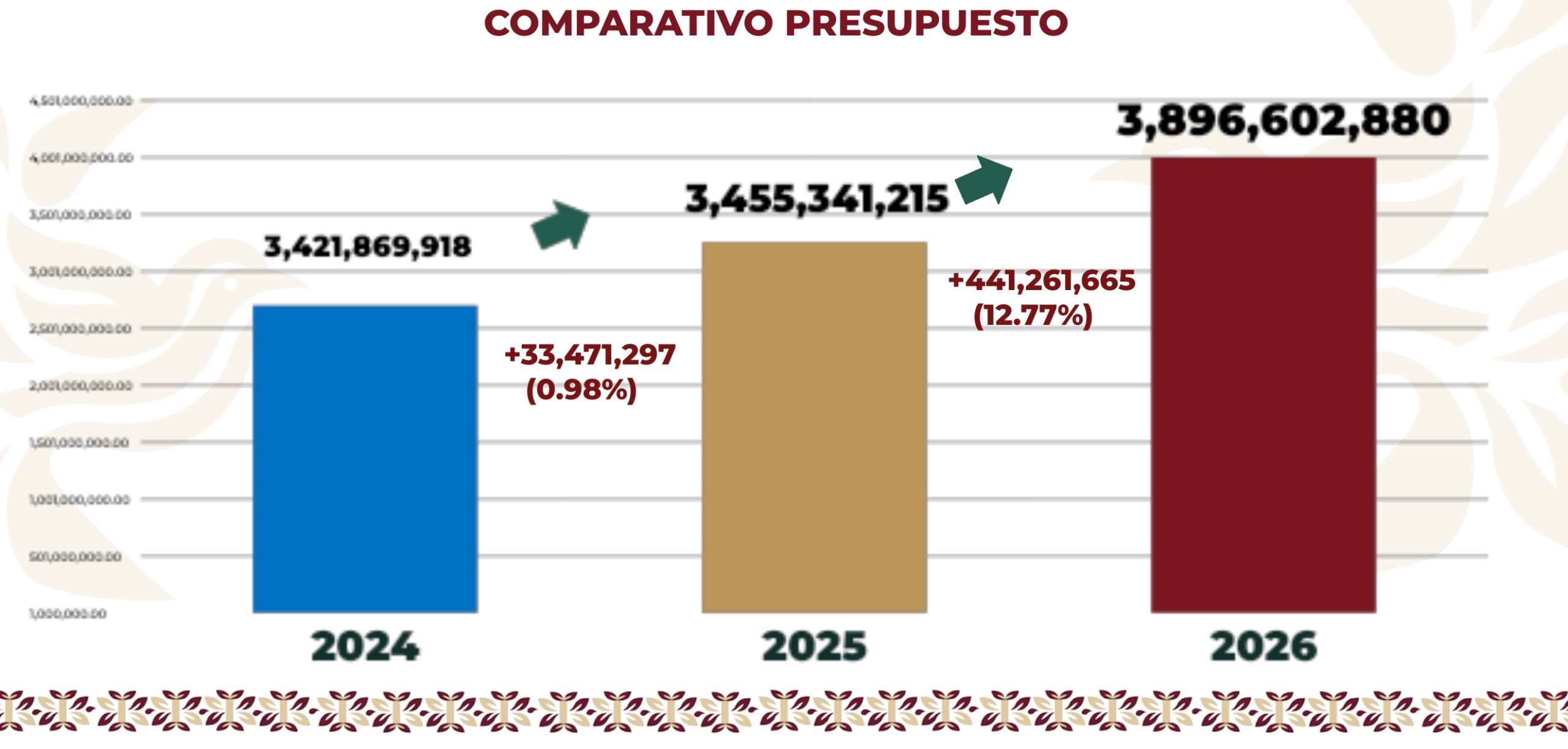 Este aumento permitirá homologar salarios del personal policial, fortalecer el equipamiento, adquirir equipo de protección e incorporar tecnología de punta, con el objetivo de reforzar las acciones de seguridad en favor de las familias izcallenses.En el rubro de obra pública, el presupuesto para 2026 será de 505 millones 357 mil 395 pesos, lo que representa un incremento del 32 por ciento, equivalente a 123 millones de pesos adicionales. En 2024 se destinaron 239 millones 083 mil 378 pesos y en 2025, 382 millones 516 mil 710 pesos.