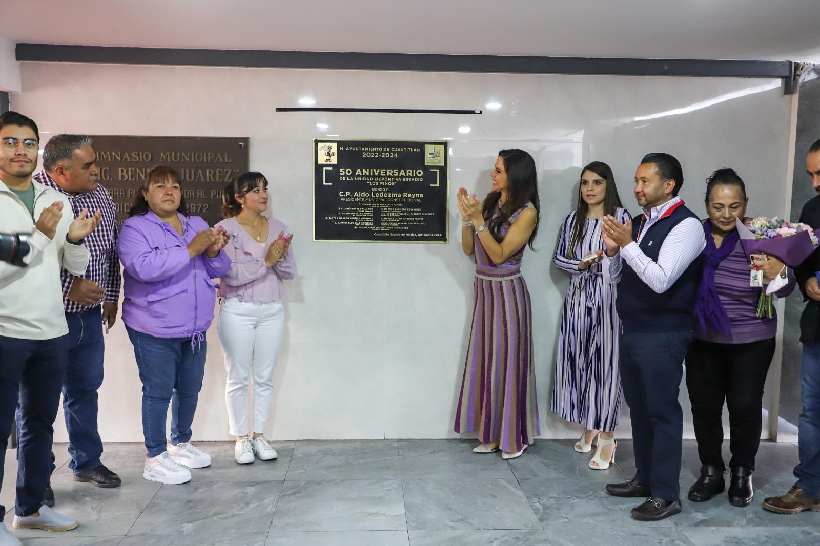 A 50 años de su construcción el gobierno de Cuautitlán realizó trabajos de rehabilitación de la Biblioteca Pública Municipal Juana de Asbaje y de la Unidad Deportiva Los Pinos, haciendo la entrega de estas obras el presidente municipal Aldo Ledezma Reyna, su esposa Brenda Aguilar y como madrina de honor la comunicadora Paola Rojas.