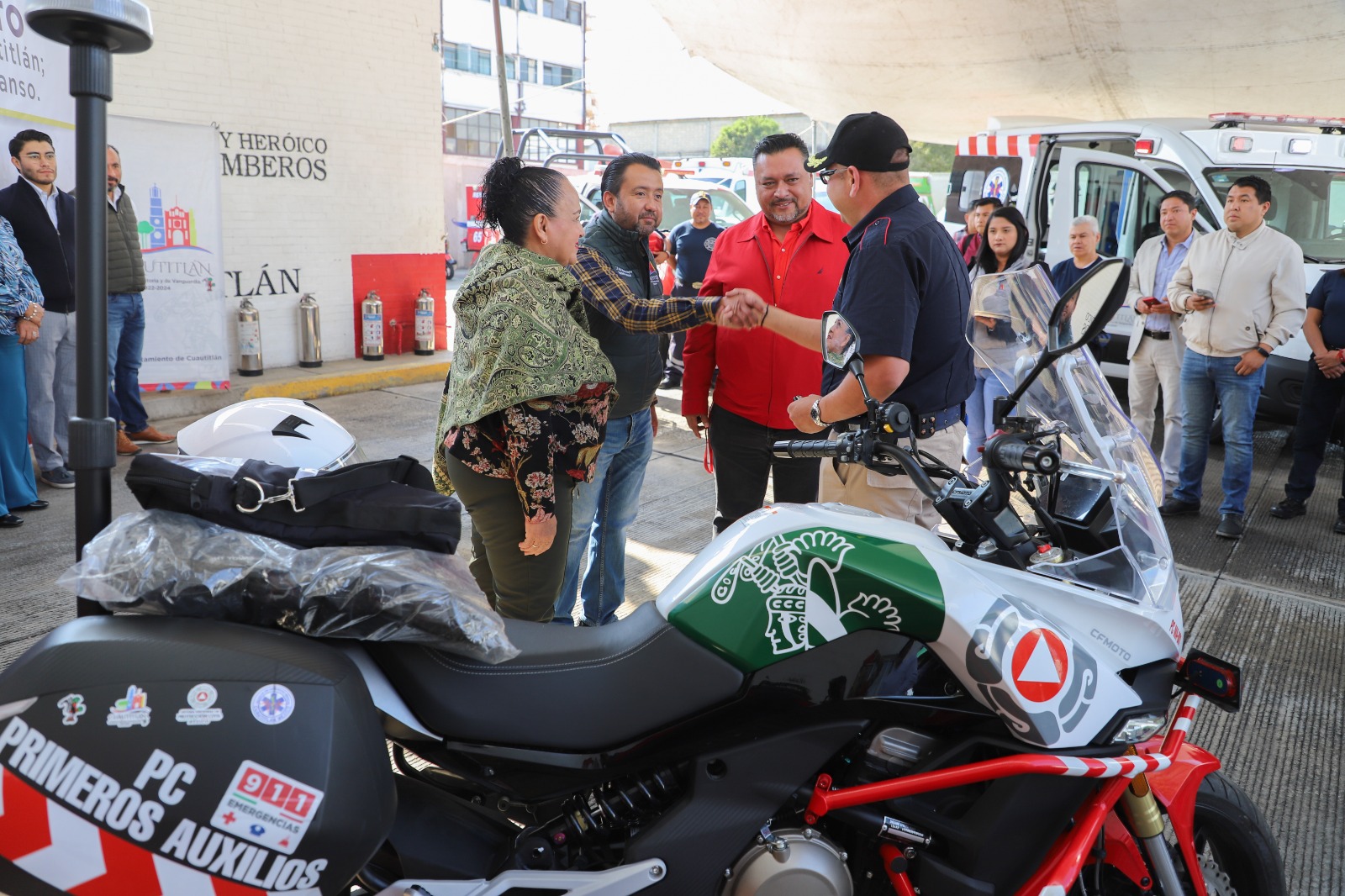 En este sentido el alcalde Aldo Ledezma detalló que se pone en marcha el programa de Motoambulancia en Cuautitlán, al contar con dos nuevas unidades que son conducidas por paramédicos que brindan el primer contacto de manera rápida y eficaz, ante el llamado de emergencia.