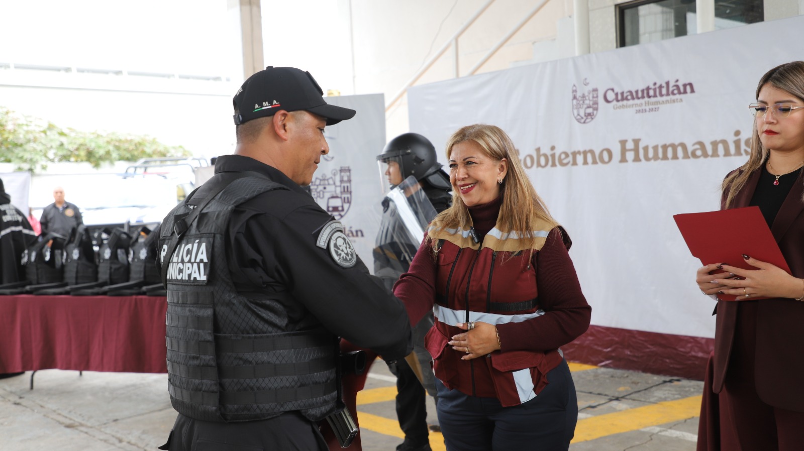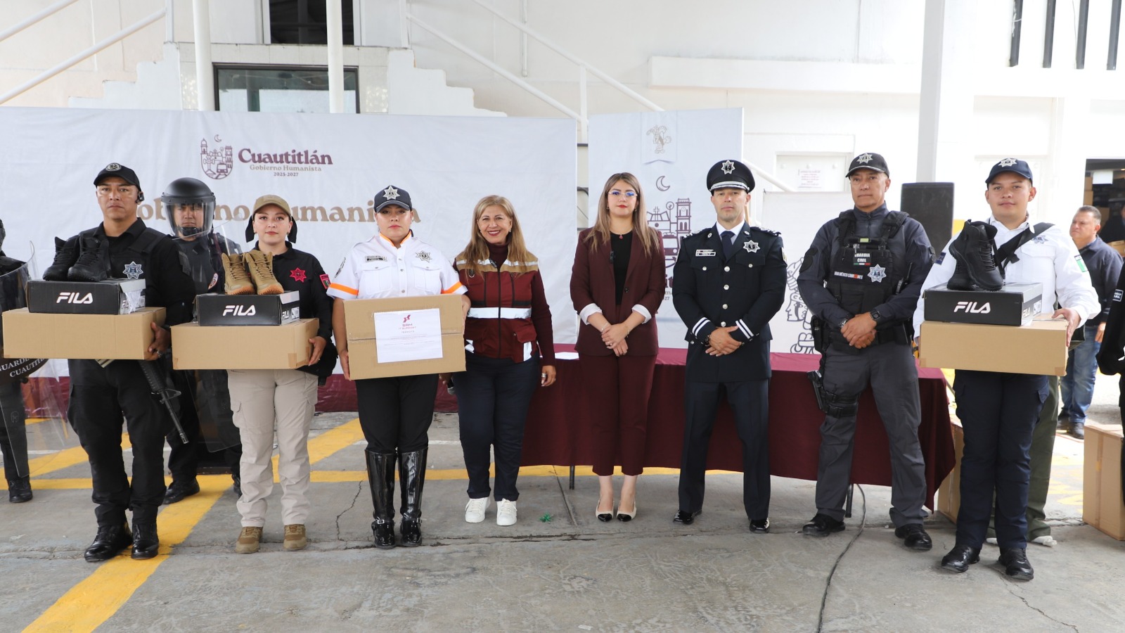 Durante un acto celebrado este día, se entregaron 800 uniformes y equipo táctico a los elementos de la Guardia Civil y Tránsito Municipal, con el objetivo de brindar mejores condiciones de trabajo y reforzar la confianza ciudadana en la corporación, también se entregaron: 400 pares de botas, 100 chalecos balísticos, 30 equipos antimotines 320 impermeables.