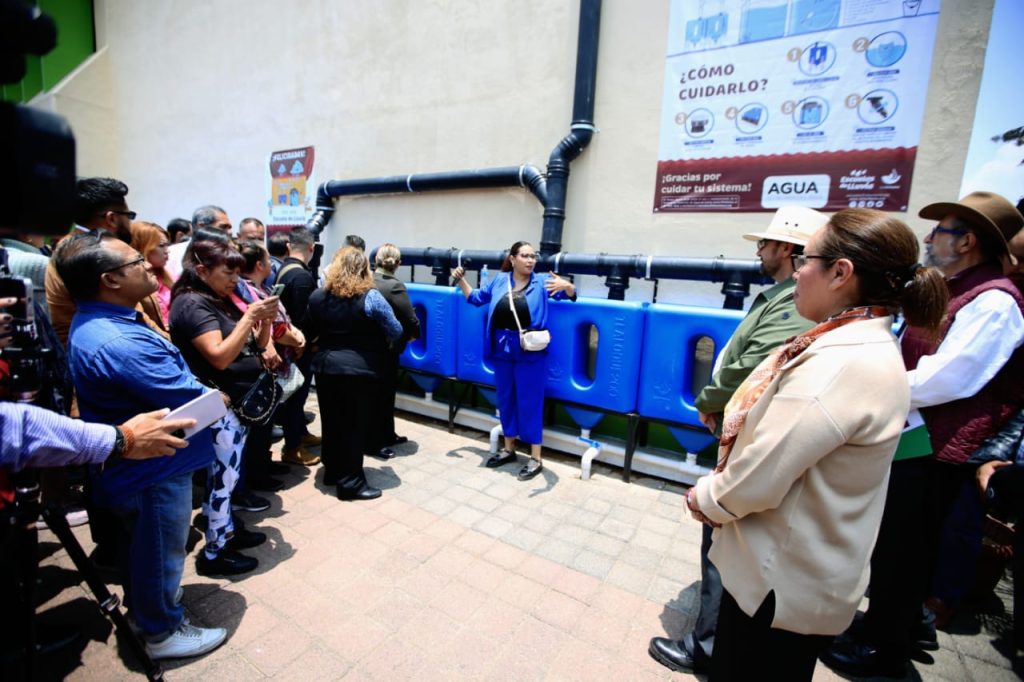 Previamente el Secretario del Agua inauguró un sistema de captación para almacenar 15 mil litros de agua de lluvia y que a través de filtros puede se utilizada en beneficio de 7 mil alumnos, y evitar que deban comprar 25 pipas de agua a la semana.