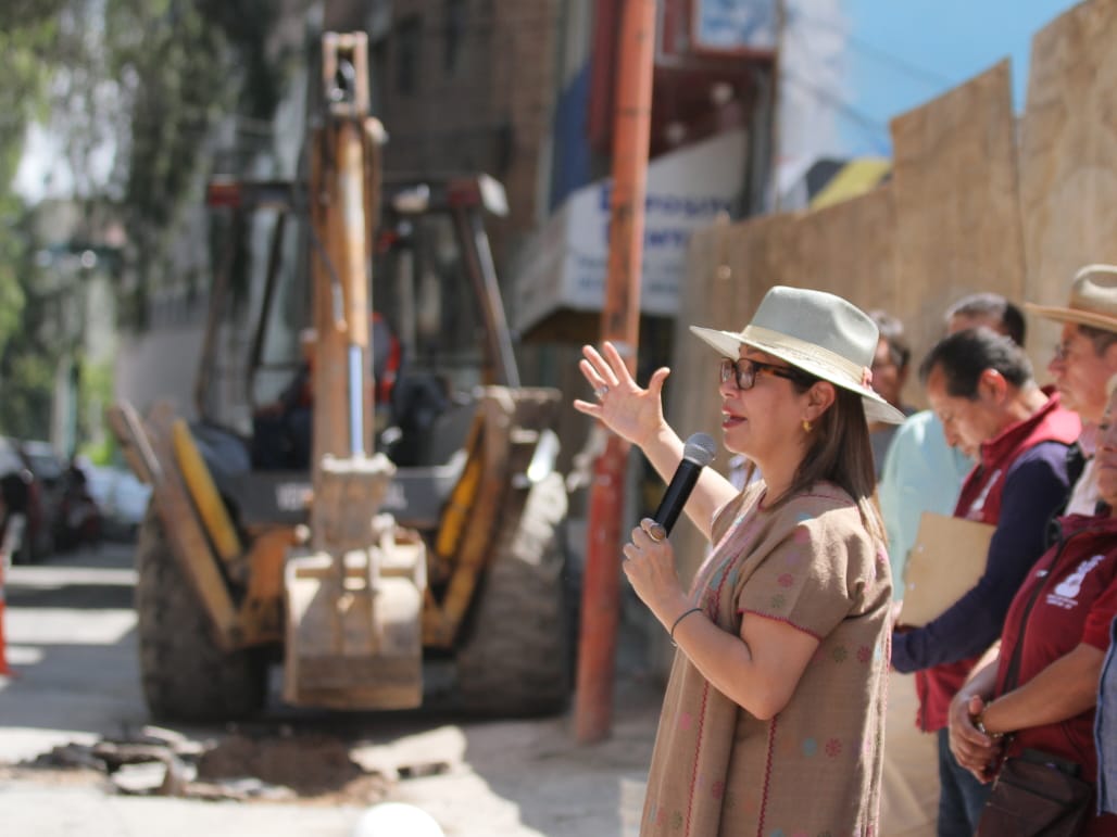 Ecatepec, Méx., a 16 de octubre del 2025. La presidenta municipal Azucena Cisneros Coss dio el banderazo de inicio a trabajos para sustituir una línea de la red hidráulica de más de 200 metros en San Cristóbal Centro, que beneficiará a más de cinco mil vecinos de esta zona.