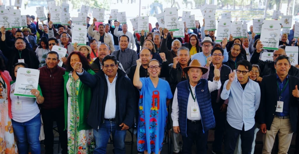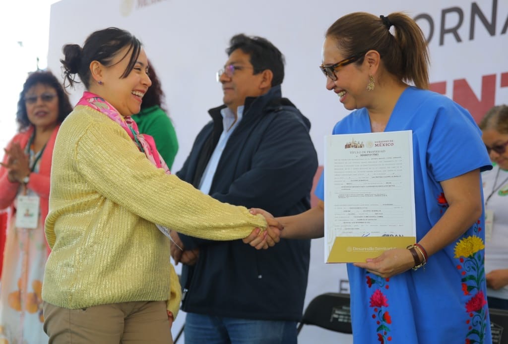 Después de hasta 40 años de espera, 386 vecinos de Ecatepec recibieron el título de propiedad de sus viviendas, construidas en predios ejidales, lo que les otorga certeza jurídica de su patrimonio gracias al trabajo conjunto de colonos y los gobiernos municipal, estatal y federal, así como del Registro Agrario Nacional (RAN).