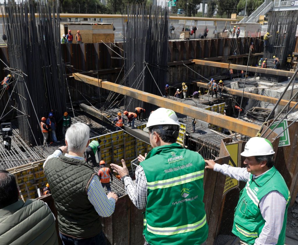 Durante el recorrido de supervisión, Del Mazo Maza visitó el Paradero CETRAM Santa Martha, donde estuvo acompañado por el Secretario de Movilidad del Estado de México, Luis Limón Chávez; del Director General de Grupo Hermes, Alberto Pérez Jácome, y Rosa María Zúñiga Canales, Directora General del Sistema de Transporte Masivo y Teleférico del Estado de México (SITRAMyTEM), para revisar el avance con el que cuenta esta obra.