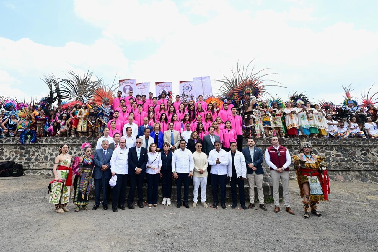 “En este emblemático lugar hoy nos reúne como en tiempos antiguos el fuego sagrado que es símbolo de amistad, esperanza y de fraternidad entre los pueblos. Desde la Ciudad de los Dioses se encenderá el fuego nuevo que marca el inicio de la edición número 25 de los Juegos Centroamericanos y del Caribe Santo Domingo 2026, esta justa deportiva reúne a lo mejor del talento deportivo”, comentó la Gobernadora Delfina Gómez Álvarez.