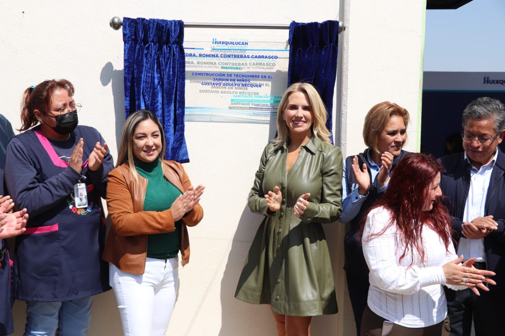 Asimismo, Romina Contreras acudió al Jardín de Niños “Gustavo Adolfo Bécquer”, donde se construyó la techumbre de esta escuela; obra que tiene una superficie de 187 metros cuadrados y se llevó a cabo la inversión de un millón 293 mil pesos.
