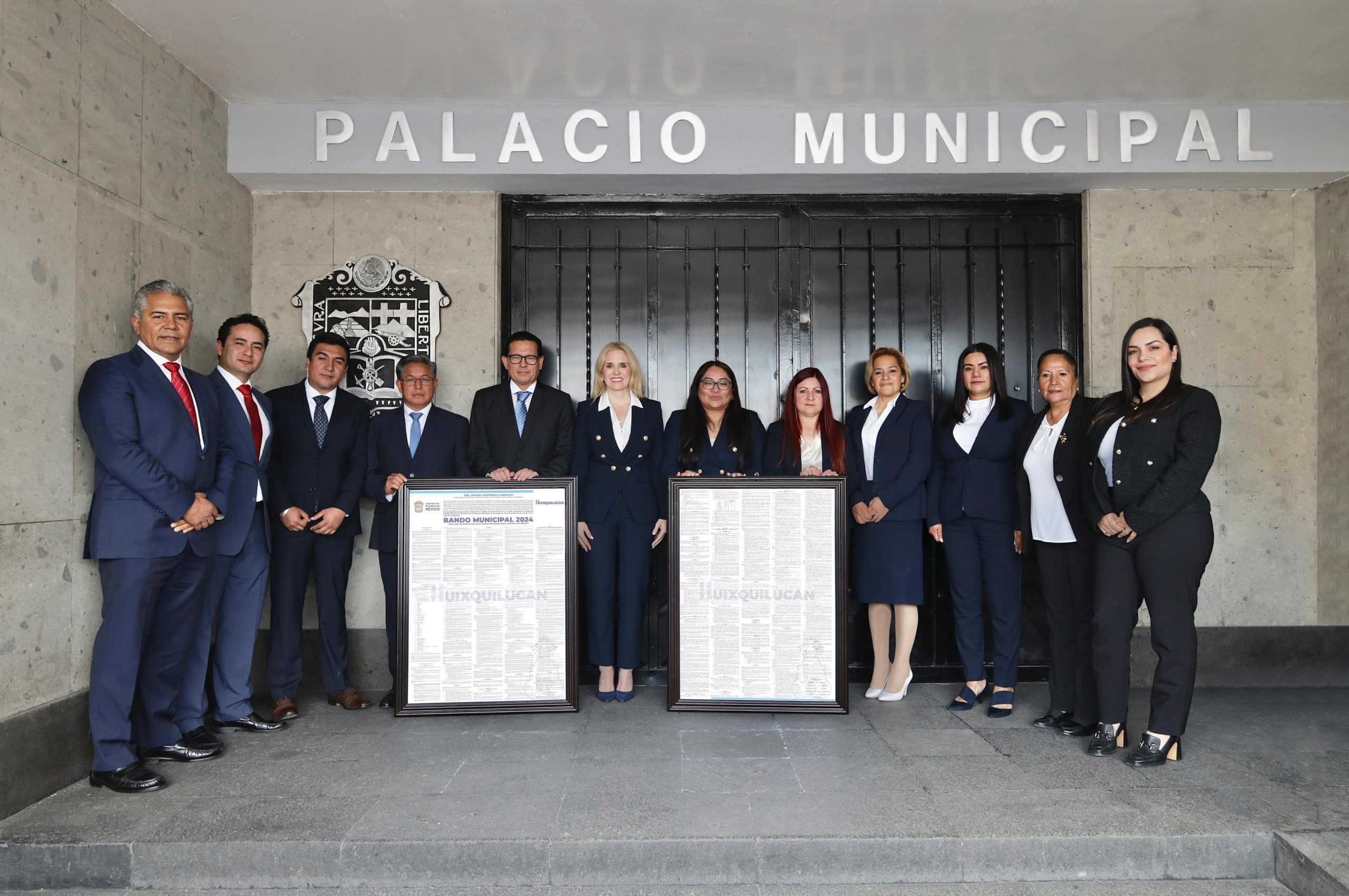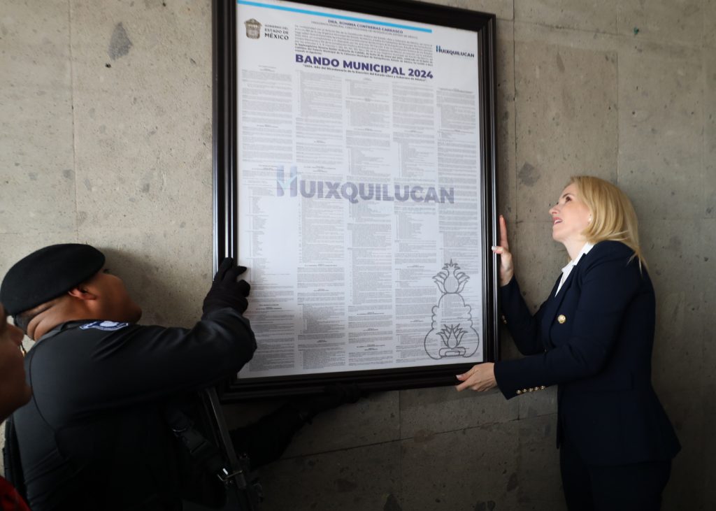 Acompañada por los integrantes del Cabildo, la presidenta municipal colocó el Bando Municipal 2024 en las instalaciones del Palacio Municipal y, posteriormente, se instaló en los centros administrativos de Pirules, Plaza Andador (Fresko) y Ex Cinemas, así como en el mercado municipal 25 de agosto, en la Cabecera Municipal.