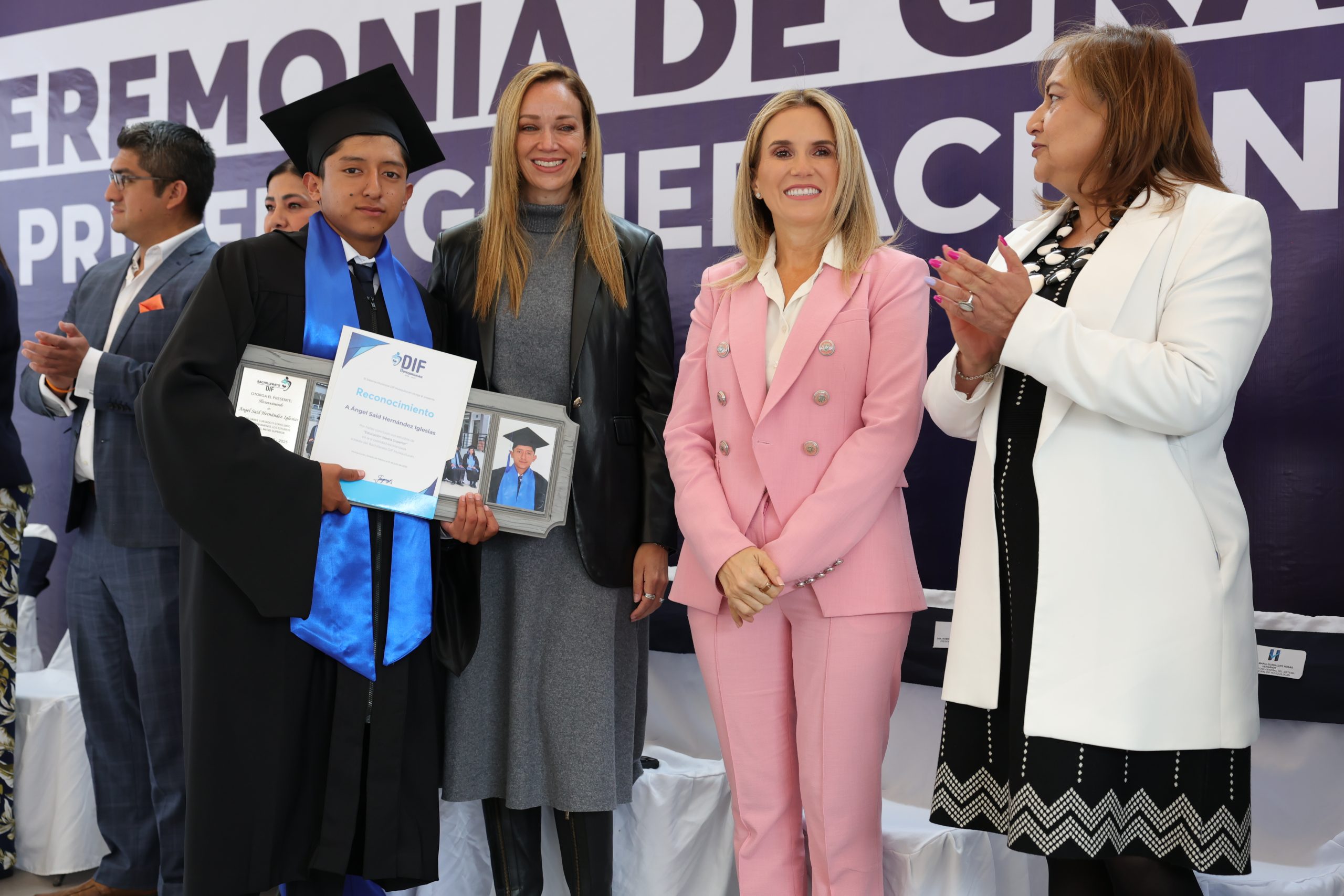 Por su parte, la presidenta del Sistema Municipal DIF Huixquilucan, Ana Luisa Pérez Aguilar, afirmó que la culminación de estudios de la primera generación del Bachillerato DIF es muestra del compromiso que se tiene con la educación con hechos y no sólo con palabras