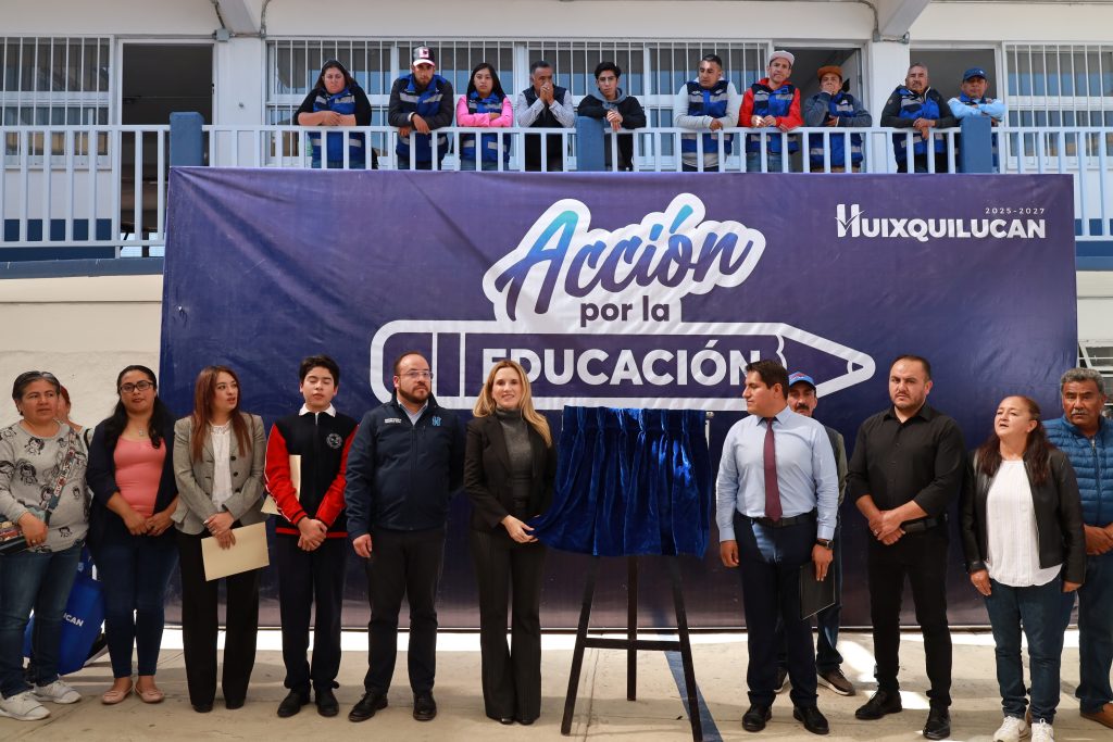 La presidenta municipal de Huixquilucan, Romina Contreras Carrasco, visitó este plantel para entregar el equipamiento y los trabajos de rehabilitación, donde reafirmó su compromiso de seguir fortaleciendo la infraestructura educativa del municipio para que niñas, niños y adolescentes cuenten con espacios modernos, seguros y adecuados para su desarrollo académico.