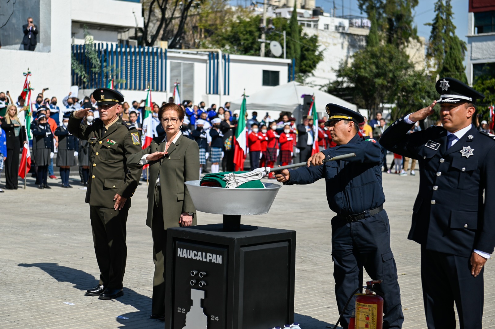 “Nuestro Lábaro Patrio también está presente en las luchas que todos los días enfrentamos los ciudadanos, desde el arduo trabajo de los padres, la responsabilidad de los estudiantes en los salones de clases y la extraordinaria labor de los maestros, hasta la gran dedicación que realizan las madres para sostener a sus familias, cada día los mexicanos y los naucalpenses realizamos un tributo a nuestro país y por consecuencia a nuestra Bandera”.