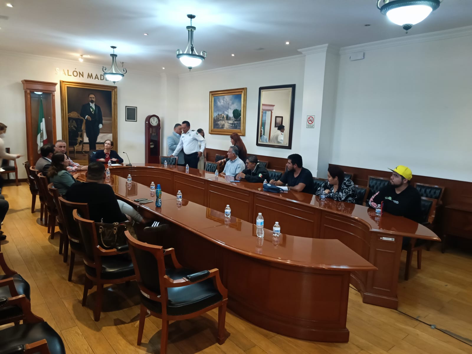 La alcaldesa Angélica Moya Marín y los titulares de las Direcciones Generales de Administración, Gabriel García; Gobierno, Sergio Mancilla; Seguridad, Francisco Rosas, y Jurídica y Consultiva, Susana Muñoz, así como el titular de la Unidad de Asuntos Internos, Óscar Antonio del Toro, recibieron este miércoles en el Salón Madero del palacio municipal a los familiares de las víctimas.