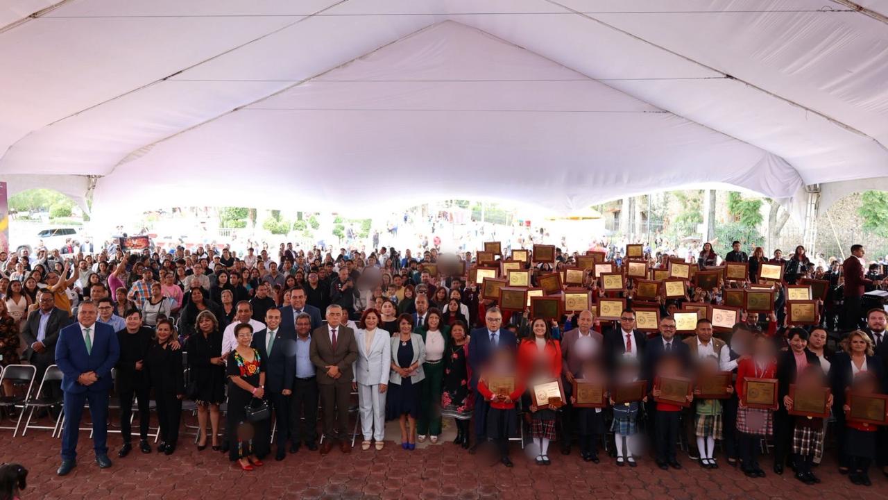 Durante la ceremonia, realizada en la explanada municipal, la alcaldesa exhortó a los galardonados a continuar esforzándose y seguir siendo un ejemplo, ya que lo mejor de la transformación se debe a la educación.