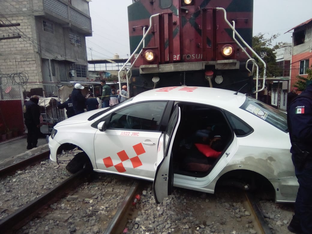 Los hechos se suscitaron esta tarde cuando el taxi intentó ganarle el paso al tren, en Manzana 025, San Lucas Patoni.