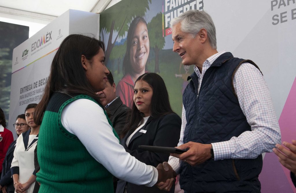 Alfredo Del Mazo reconoció el esfuerzo que estas jóvenes mexiquenses hacen para terminar sus estudios de nivel medio superior y superior, a quienes les dijo que son un ejemplo para otras mujeres que están en la misma situación.