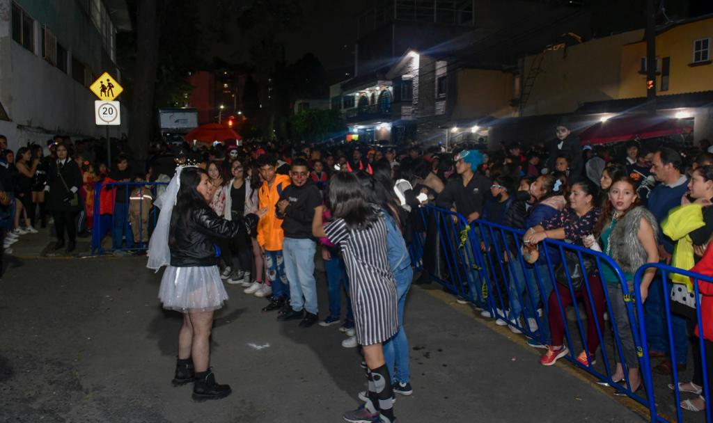 Afuera de la casa del terror había una verdadera fiesta de disfraces. Conejos, diablos, brujas, zombies y muchos personajes más acudieron en grupos de amigos, familias y pareja.