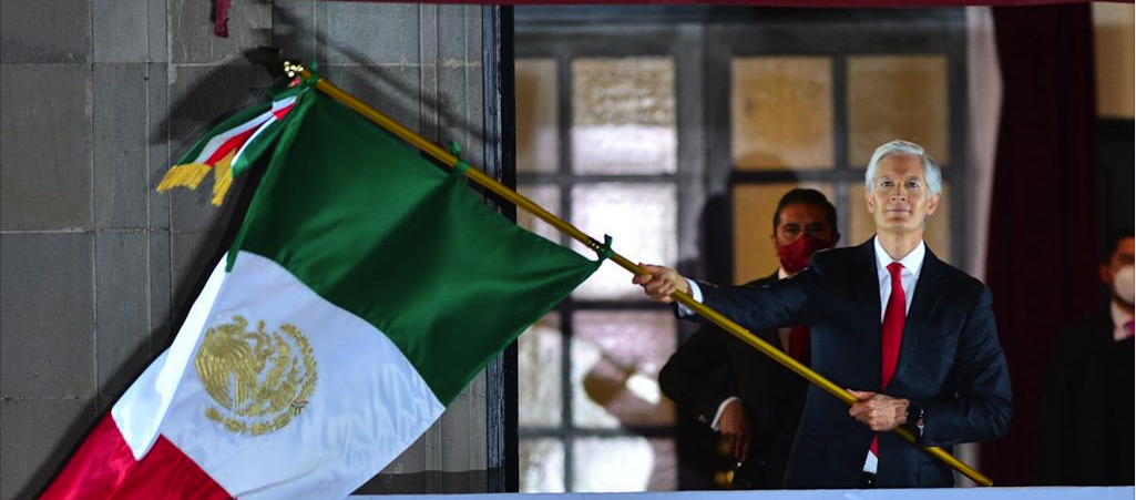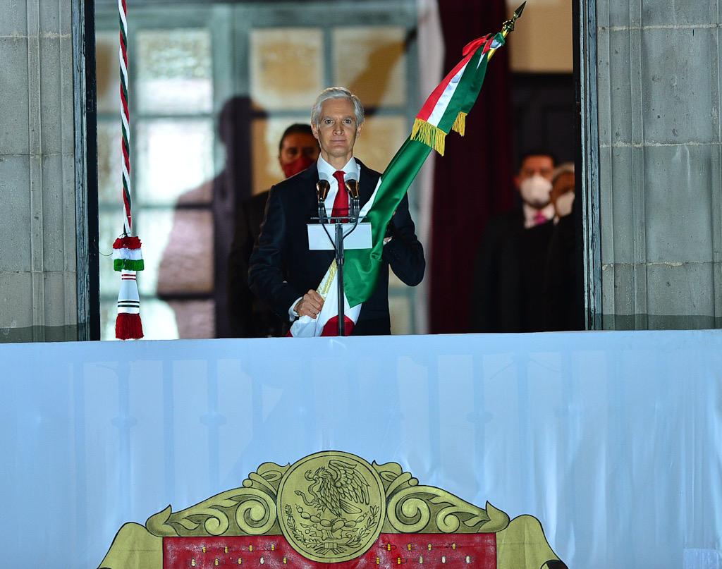 El mandatario estatal recibió la bandera nacional de manos del Alcalde de Toluca, Juan Rodolfo Sánchez Gómez y en punto de las 23:00 horas salió al Balcón Central de Palacio de Gobierno, para dar el tradicional Grito de Independencia.