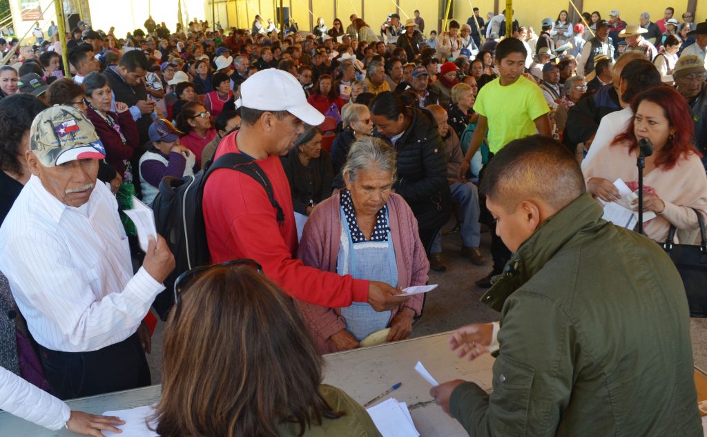 El presidente municipal Armando Portuguez Fuentes junto con Bertha Padilla Chacón, Delegada Regional de la Secretaría de Desarrollo Social (Sedesol), encabezaron el inicio de la entrega de apoyos económicos como parte del Programa Pensión para Adultos Mayores (PPAM), para personas de más de 68 años de edad.