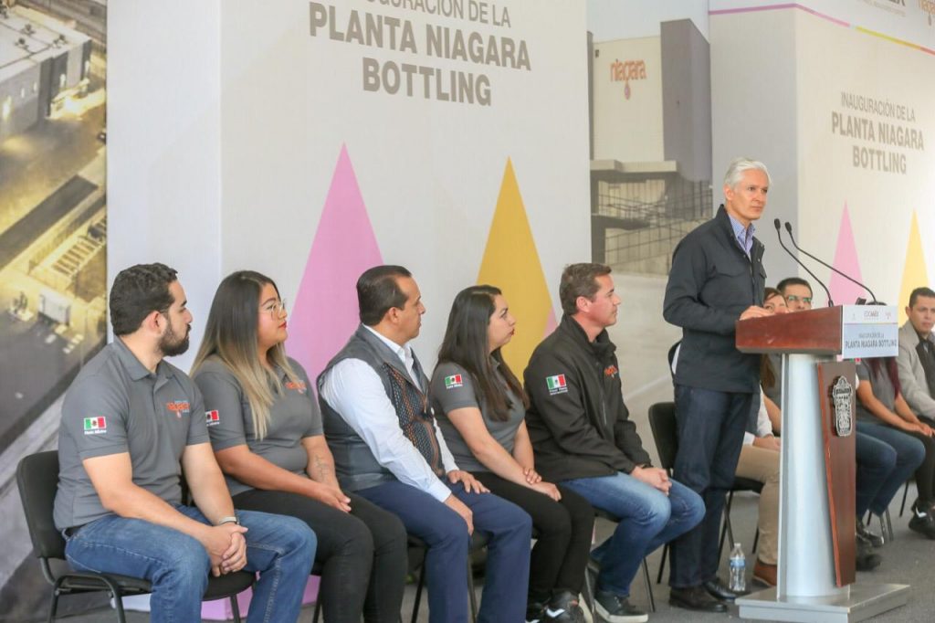 •Destaca mandatario mexiquense que la embotelladora Niagara Bottling decidió instalarse en el norte del Edoméx debido a ventajas como la ubicación estratégica, la infraestructura y la gran conectividad con otros puntos del país.