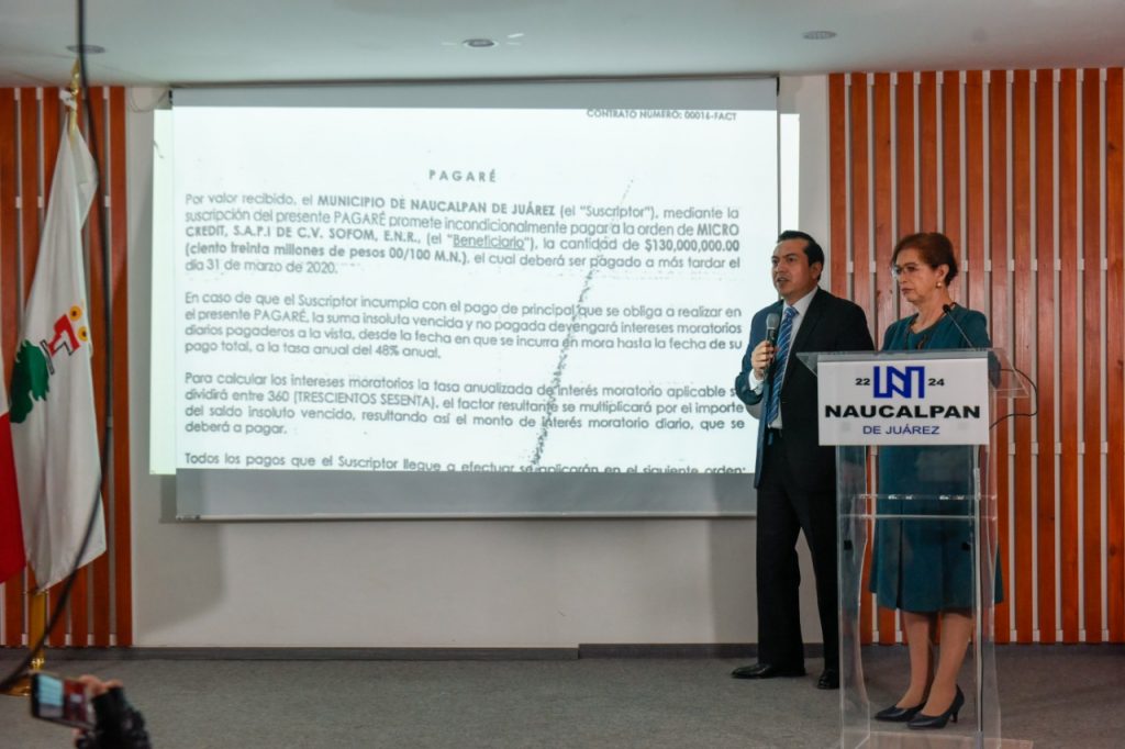Gabriel García Martínez, director general Jurídico y Consultivo de Naucalpan, detalló que la línea de crédito que dio origen al pagaré no se efectuó ante una institución bancaria, sino con una Sociedad Financiera de Objeto Múltiple (SOFOM), sin que fuera autorizada por el cabildo.