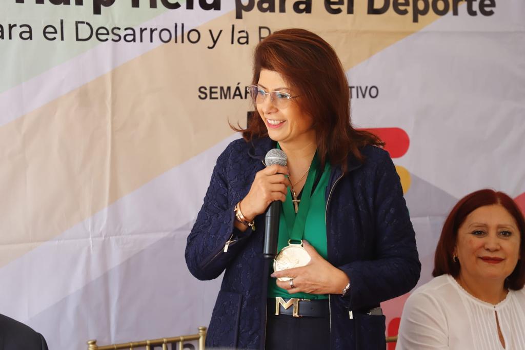 La presidenta municipal, Mariela Gutiérrez Escalante es la primera edil en el país en recibir el reconocimiento como Embajadora del Deporte por el Desarrollo y la Paz, que otorga la Fundación Alfredo Harp Helú, por su labor en fomentar el deporte en Tecámac.