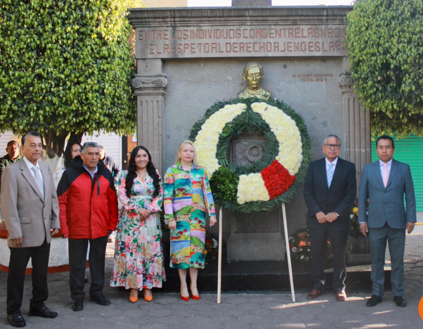 El Presidente Municipal por Ministerio de Ley, Juventino Lozano Vargas, y la Presidenta Honorífica del DIF Municipal, Ma. Dolores Zuppa Villegas «Palomita», colocaron una ofrenda floral y realizaron una guardia de honor en conmemoración del 219 Aniversario del natalicio del ex Presidente Benito Juárez.
